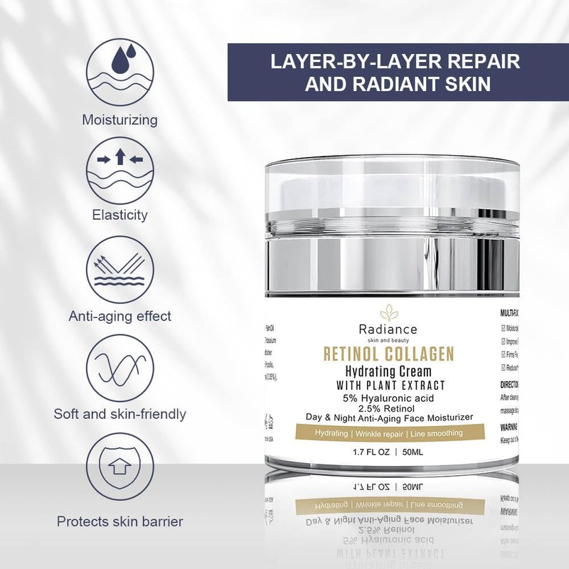 RADIANCE All Natural Retinol Intense Cream for Face Retinol Cream For Face Moisturizer Anti-Aging Face Moisturizer Wrinkle Repair cream with Collagen and Hyaluronic Acid Korean Formula All Skin