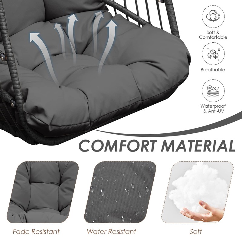 - COMPACT, SPACE-SAVING: Featuring a dome-shaped basket seat with a compact footprint, this egg hanging chair for outside fits comfortably in smaller spaces like apartments or balconies; Enjoy full-sized comfort without taking over your room