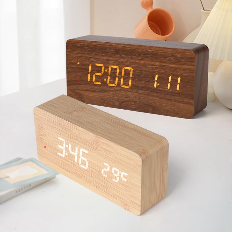 - 【Wooden Multi-Function LED Watch】12/24 hour mode, time, date, temperature (Fahrenheit / Celsius), minute countdown, 3 levels of brightness, automatic brightness adjustment. Accuracy: Average day difference ± 3 seconds; Operating temperature range: 32 - 122°F (0 - 50°C); Temperature display error: ±3°C; Humidity display error: ±10%