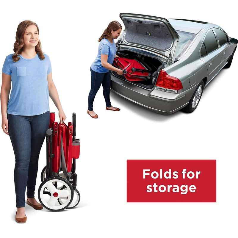 - Push and Pull: Converts to a push-and-pull toddler wagon that allows the optimal steering configuration for each mode; Folds flat for easy storage