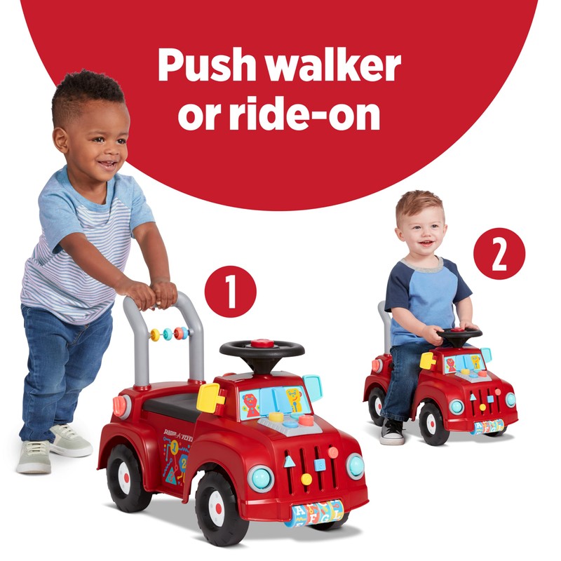 - DEVELOP MOTOR SKILLS: This ride-on for 1-year olds has three modes of play: push walker, ride-on, and sensory play. These modes help toddlers gain confidence in walking and develop fine and gross motor skills.