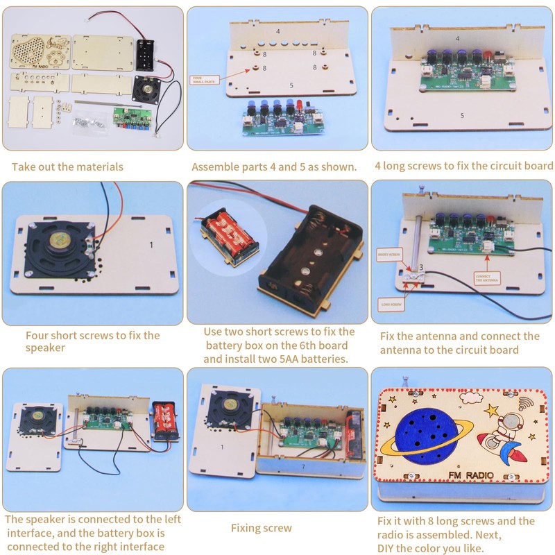 - Create your own radio: Build your own FM radio model with this DIY kit. The automated search setting range of 87-108 MHz, combined with the exquisite adjustable antenna, ensures that you can receive information anywhere and not miss anything important. Power supply: 2 x AA batteries (batteries not included).