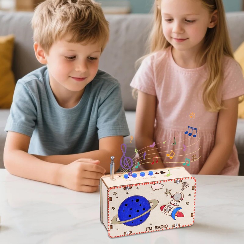 - Colouring the radio: Unleash creativity and artistic expression with the included set of 6 vibrant colours and 2 brushes. After assembling the radio, children can make their own creative adjustments. This activity promotes children's creativity and imagination while reducing screen time to protect the eyes.