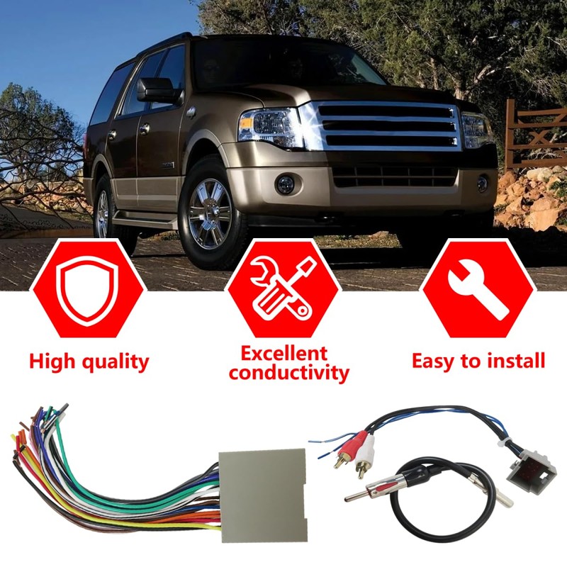Radio Wiring w/Antenna Adapter RCA Input Replacement for Edge 2007-2010, for Mustang 2004-2009, Aftermarket Stereo Install Wire Cable Harness with RCA Adapter Plug by Qblahip