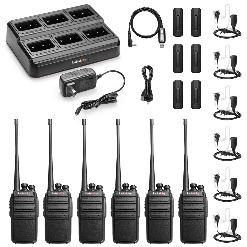 Radioddity GA-2S Long Range Walkie Talkies UHF Two Way Radio for Camping/Security/Business with Micro USB Charging + Air Acoustic Earpiece with Mic + 1 Programming Cable (6 Pack) by Radioddity Store