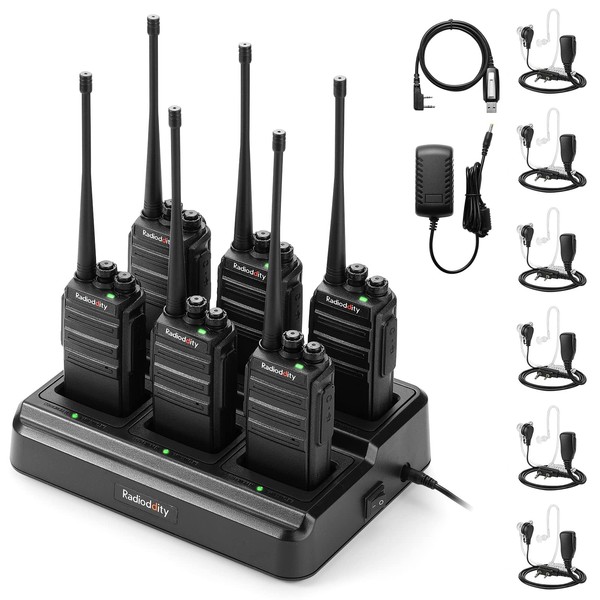 Radioddity GA-2S Long Range Walkie Talkies for Adults UHF Two Way Radio Rechargeable with Micro USB Charging + Air Acoustic Earpiece with Mic + Programming Cable, for School Retail Business (6 Pack)