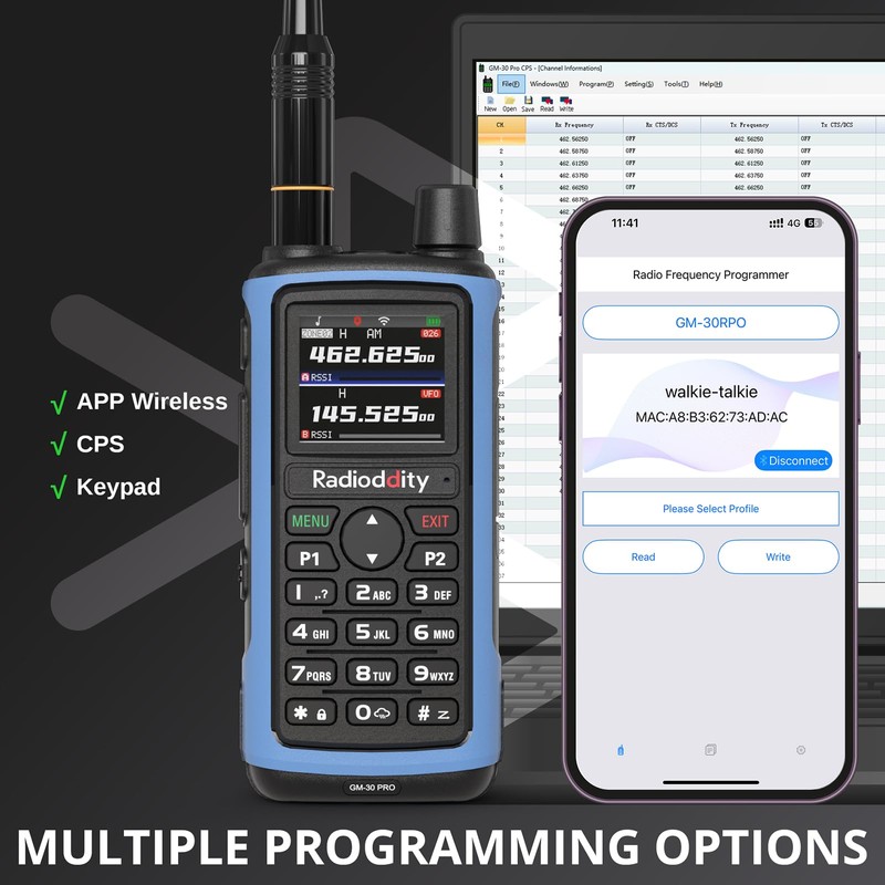 - Wireless Programming via App: Easily program channels, frequencies, and zones with the “Walkie-talkie tool” app (iOS & Android)—no PC or cable needed. Quick and intuitive setup, perfect for both beginners and GMRS pros