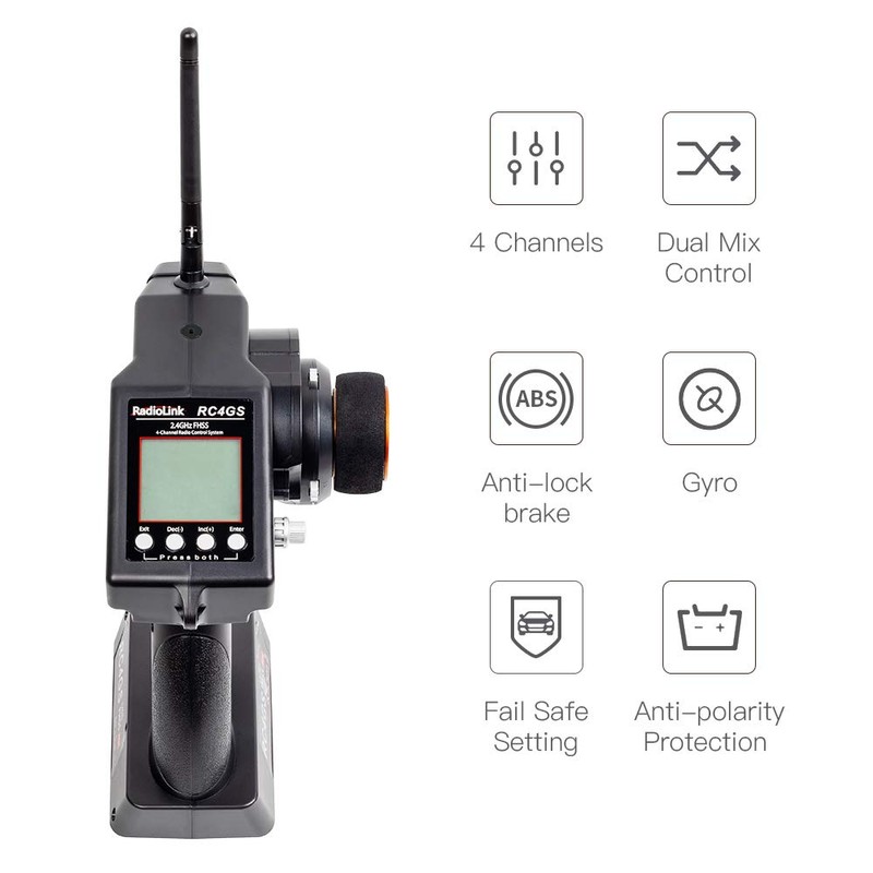 Radiolink RC4GS V2 2.4G 4 Channels RC Transmitter and Gyro Receiver R6FG Radio Controller for Crawler Truck Car Boat by Radiolink Store