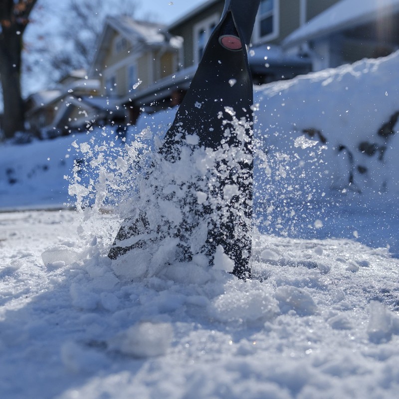 - Ice garden scraper with a durable hardened powder-coated steel blade for quick and easy ice chopping