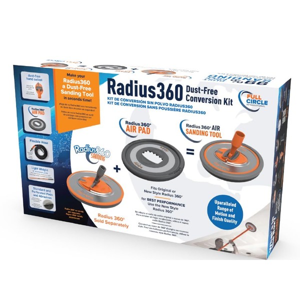 - Use the Radius360° Air for large sanding areas Perfect for walls, ceilings, Level 5, and Level 4 sanding Lightweight – under 2lbs with a pole Uses Mesh Abrasives grit range 150, 180, & 220 or 8.75” Level360° sanding disc Grit range: 60-300