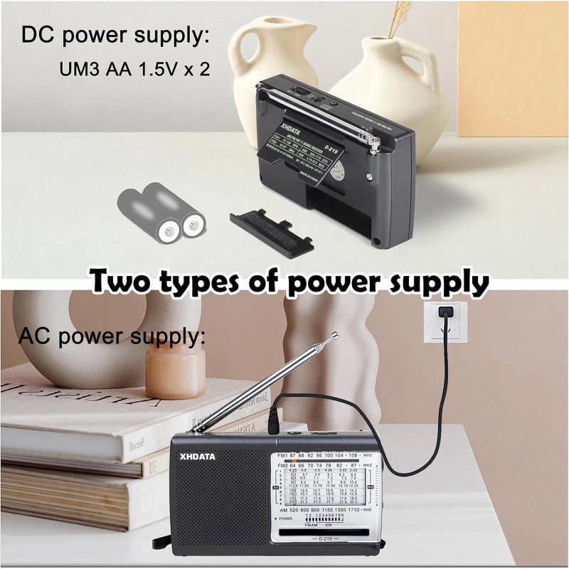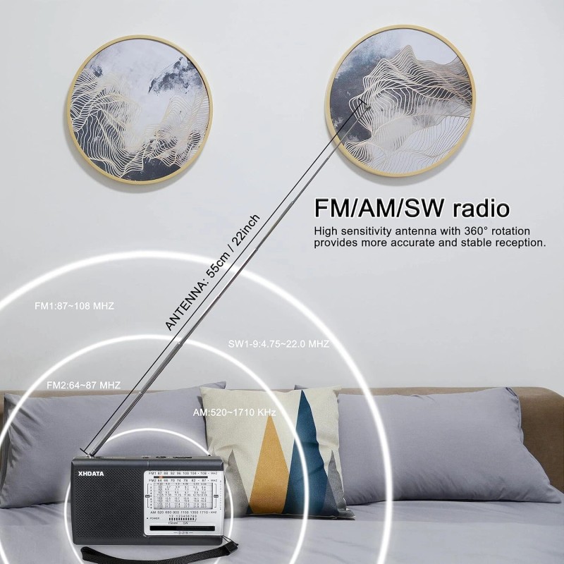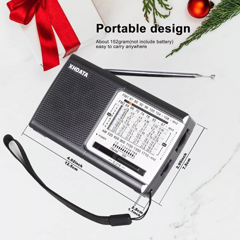 • 【EASY TO OPERATE,CONVENIENT TO USE】 XHDATA D-219 shortwave portable radio is small enough to place every where. Its size is only 4.92x1.1x2.95 inch.This sw am fm radio has basic but good functions, easy to use,Just three steps to listen to your favorite radio band, convenient for the elder and children to use.