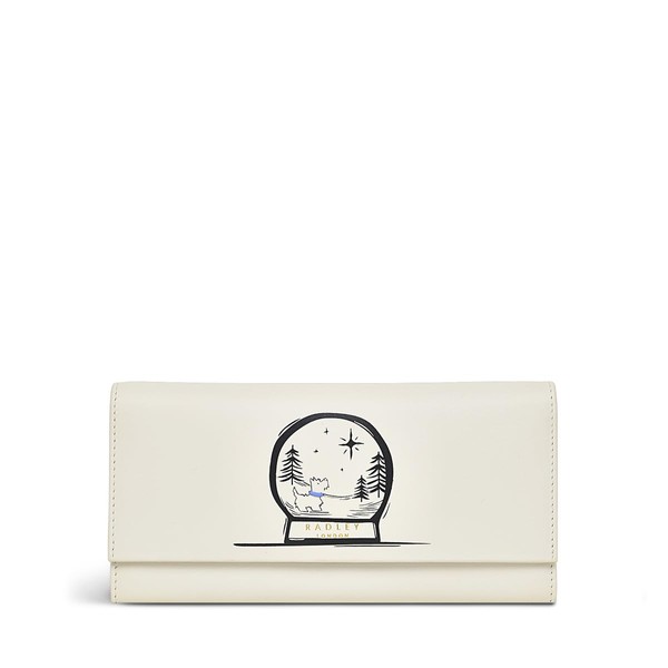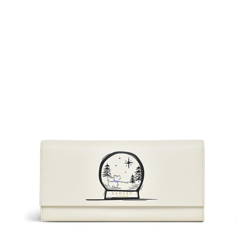 RADLEY Large Leather Flapover Matinee Purse Wallet Snow Globe in Light Natural Cream