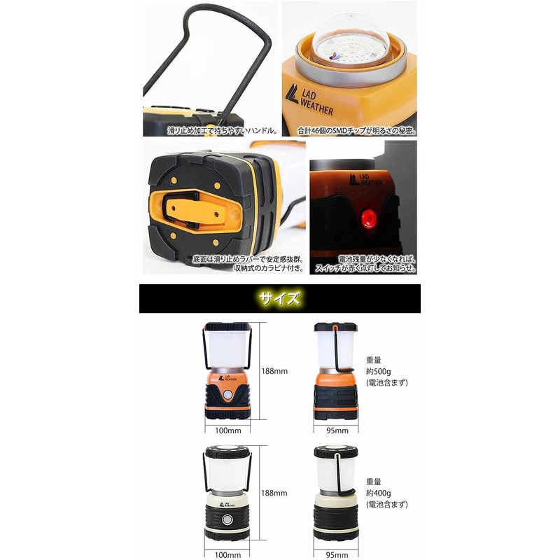 [ラドウェザー] LEDランタン 1000ルーメン 電池式 防滴 防塵 滑り止め キャンプ アウトドア 災害 防災 (オレンジ)