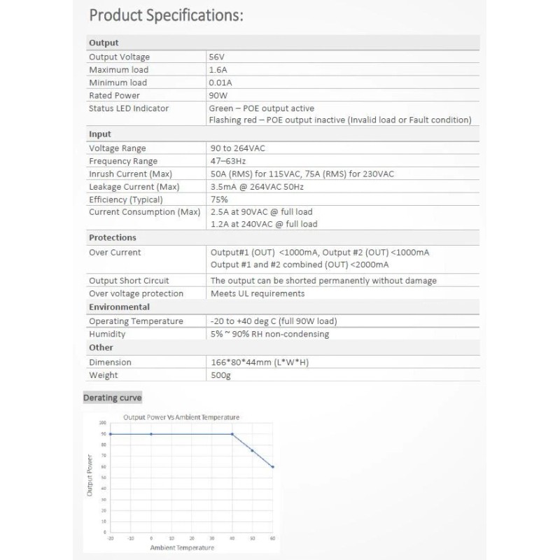 - Phihong Model:: POE90U-1BT