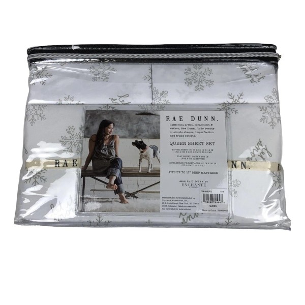 Rae Dunn Let It Snow Sheet Set WinterFlakes Holiday Bed Sheet Queen Size 4 Pc