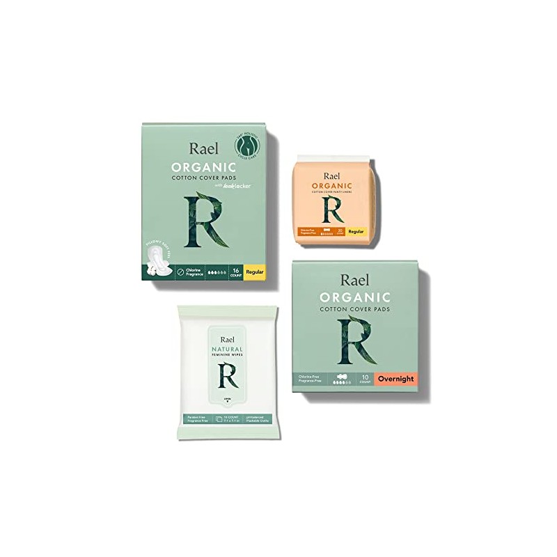Rael Period Essential Value Set - Organic Cotton Cover Regular & Overnight Pads, Regular Liners and pH Balanced Feminine Wipes
