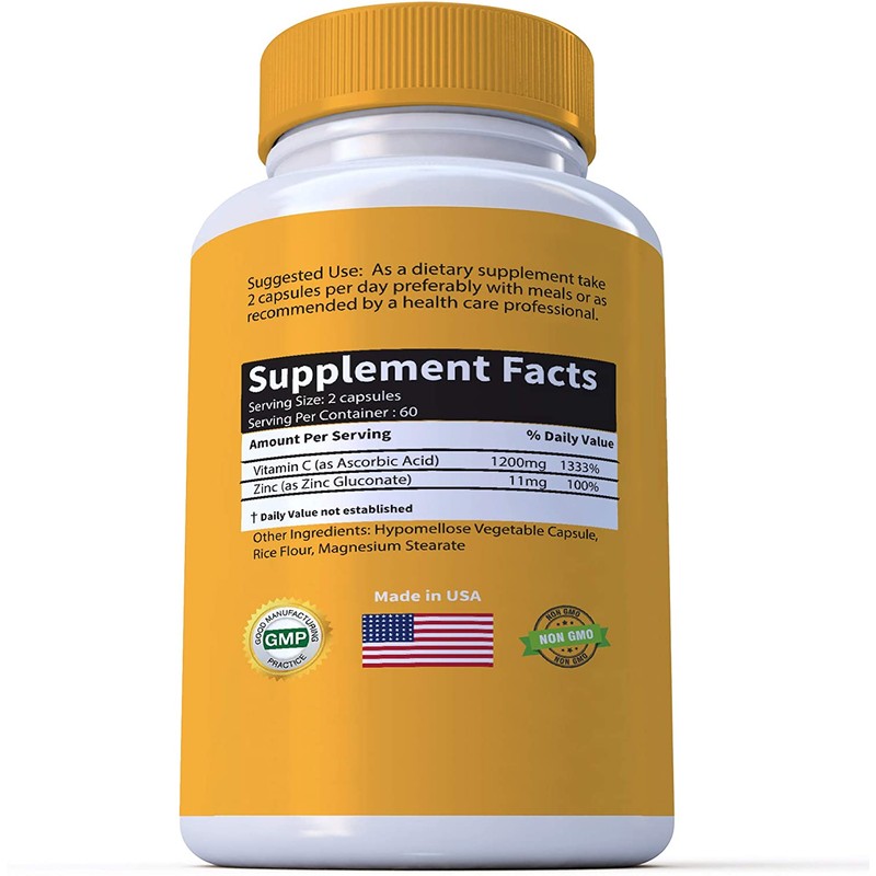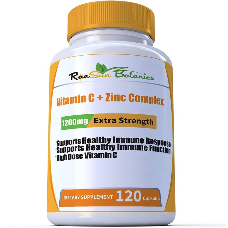 RaeSun Botanics High Dose Vitamin C + Zinc Complex for Immune Support Health 120 Capsule 2 Month Supply Vegetable Capsule by RaeSun Botanics