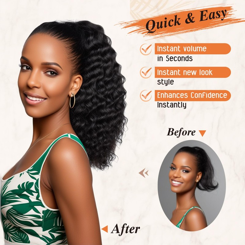 - Fluffy & Natural Look – Instantly Upgrade Your Hairstyle:This curly drawstring ponytail extension for Black women features a lightweight and voluminous multi-layered design, adding instant thickness and natural bounce to your hair. The fluffy curls provide a realistic and stylish look, making you effortlessly glamorous.