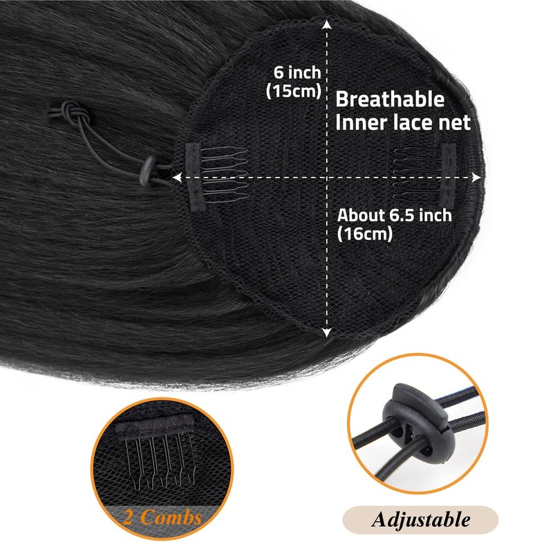- Easy to Install & Blends Well: Just Put Your Natural Hair into a Bun or Cornrow, Attach the Bun with Drawstring and Clips, Style Your Baby Hair and the Ponytail to Play up Your Features.Of Course You Can Put the Ponytail in Any Where You Want to Make Different Looks,Your Beauty is in Your Own Hands.