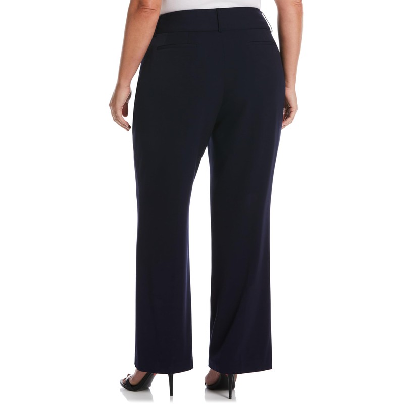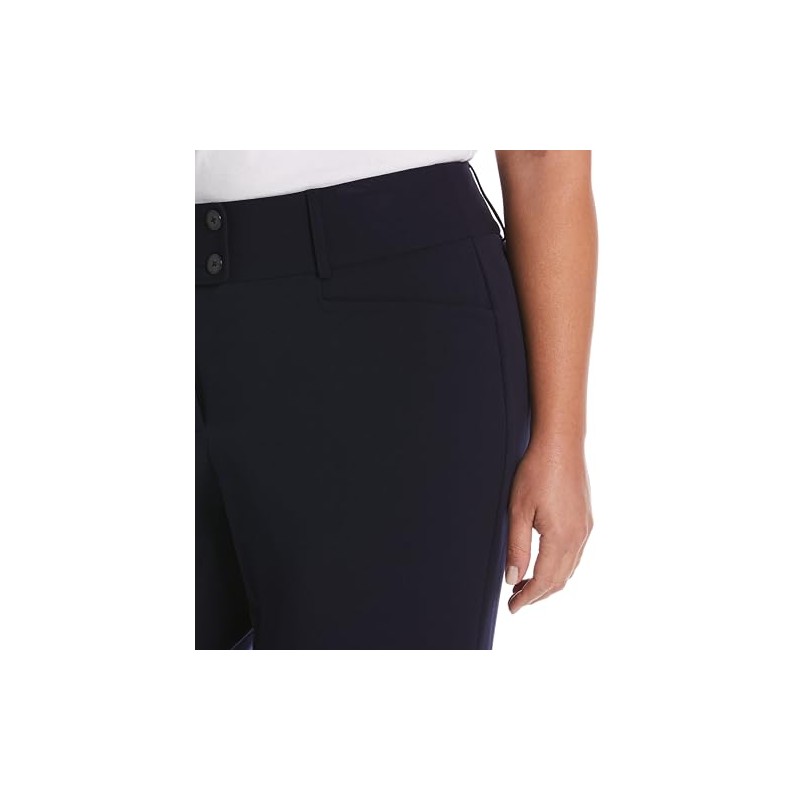 Rafaella Women's 29” Plus Size Curvy Fit Short Length Boot Cut Pants, Slimming Panel, Stretch Gabardine, Functional Pockets, Navy