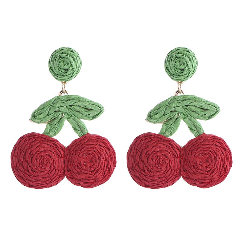 Raffia Cherry Strawberry Pineapple Shape Dangle Earrings for Women Jewelry (A)