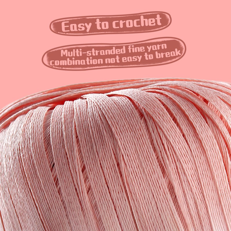 Our Breathing Raffia Cotton yarn is made of cotton. Yarn for crocheting features include: it is breathable, as if ribbon yarn can “breathe”, bringing a refreshing feeling; cotton crochet yarn has moisture absorption to keep the skin dry; crochet yarn for crocheting is soft and skin-friendly, suitable for all skin types; and raffia yarn for crochet bags has bright and long-lasting color. Straw yarn for crochet has a wide range of uses and can be used to knit tops, shorts, dresses, hats, scarves, gloves, and so on. For maintenance, wash soft yarn by hand with mild detergent. Avoid long soaking and strong rubbing. Dry crochet yarn for crocheting in a cool and ventilated place and avoid direct sunlight. Note that please buy a sufficient amount of yarn at one time because the color of yarn from different batches cannot be guaranteed to be exactly the same due to temperature and time.