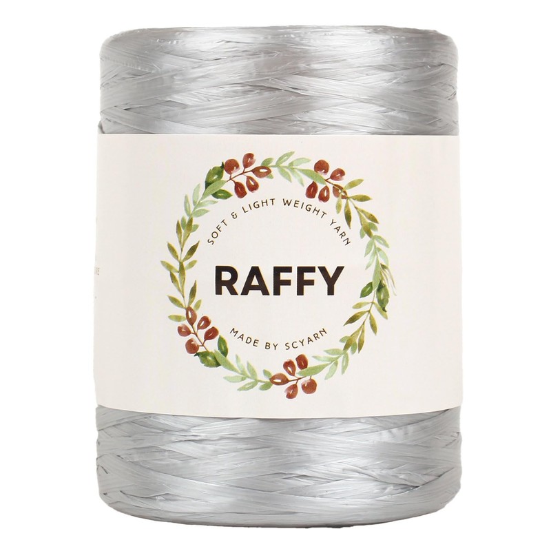 RAFFY Ribbon Yarn Soft and Light Weight Knitting and Crocheting for Making Summer Beach Bag & Sun Hat 100% Polyester (Silver)