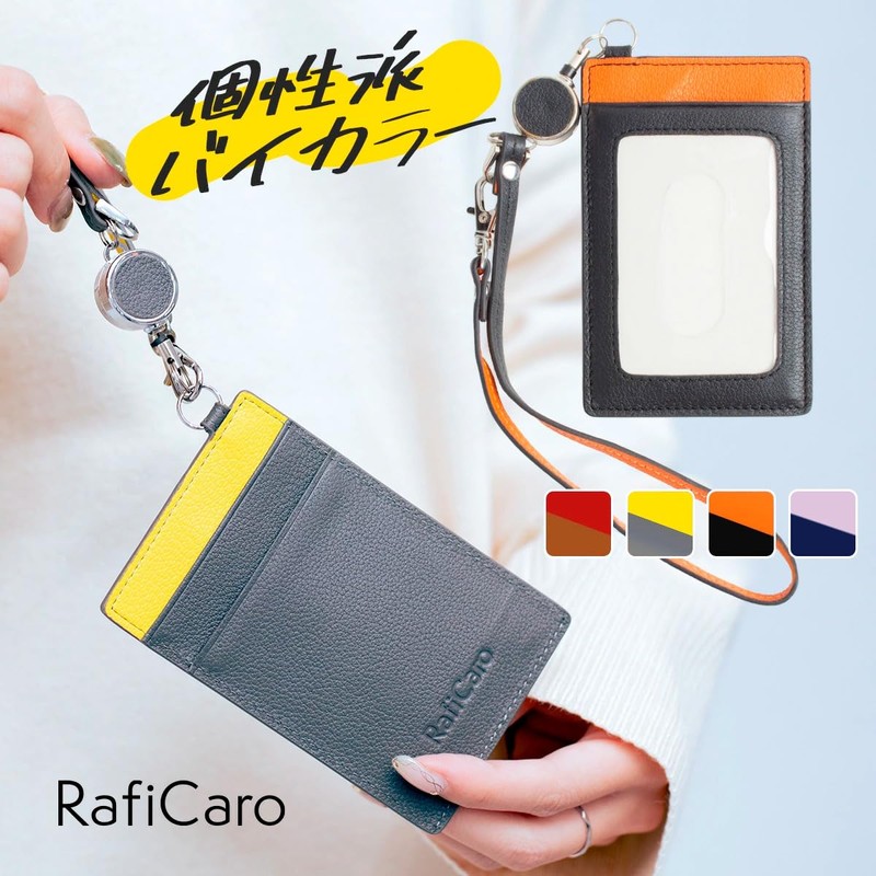 RafiCaro Women's Pass Case with Reel, Cowhide Leather, Commuter Pass Case, Employee ID Case, Bicolor IC Card, 1 Card Pocket, 2 Card Pockets, Leather, navypink