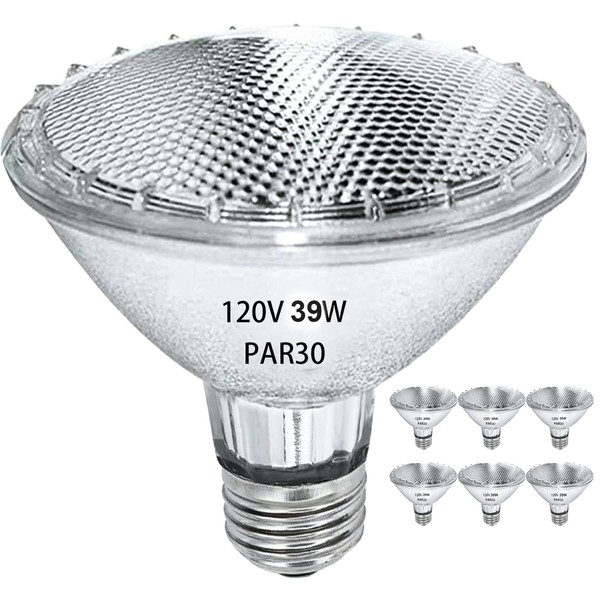 RAGFOZ Par30 39W Short Neck Halogen Flood Light Bulbs 6 Pcs, E26 Medium Base, 2700K Warm Lighting, 120V, Long Lasting Life High Output Reflector Flood Lights