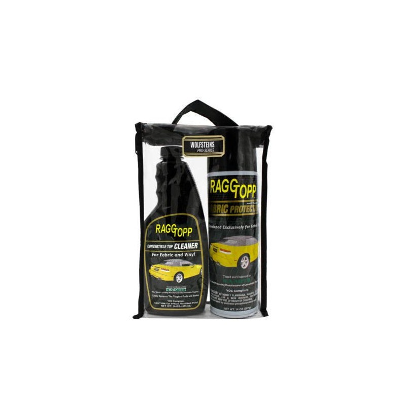 RAGGTOPP Fabric Convertible Care Kit contains:One Bottle of RAGGTOPP Fabric/Vinyl CleanerOne Can of RAGGTOPP Fabric Protectant Safely Cleans and Protects Fabric Convertible Topping to Manufacturers Specification