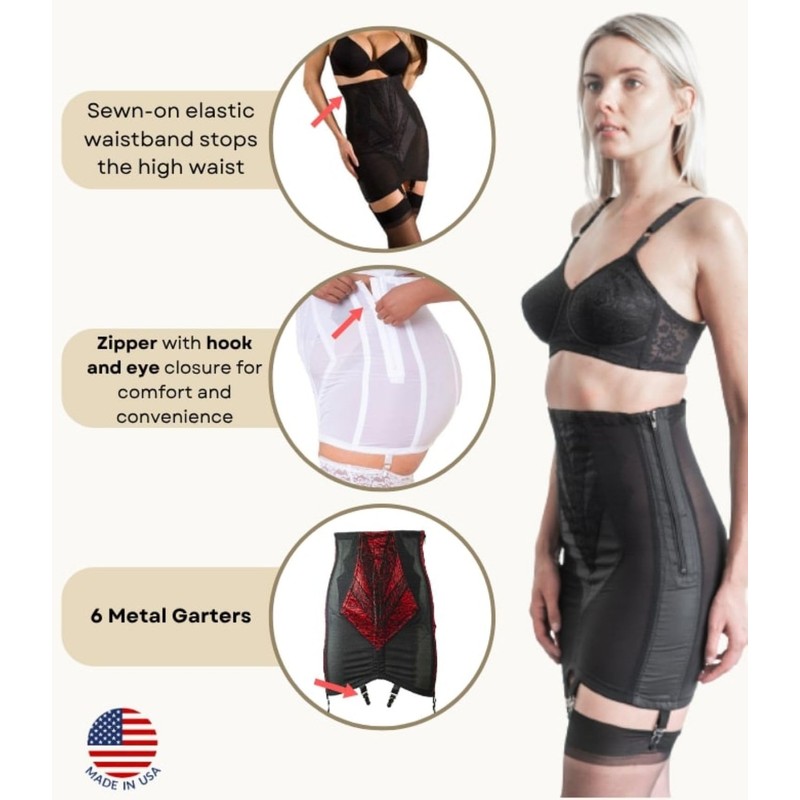 Rago Women's High Waist Open Bottom Girdle with Zipper, Black, X-Large (32)
