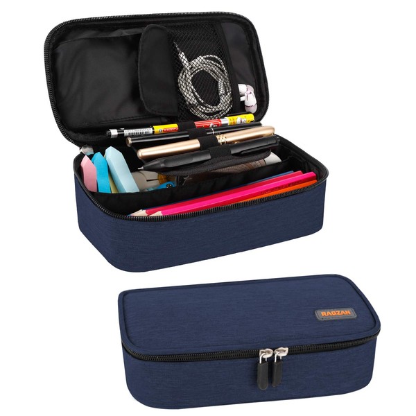 RAGZAN Pencil Case, Large Capacity Pen Case Bag Pouch Holder Stationery Desk Organizer with Zipper for School & Office Supplies(Blue)