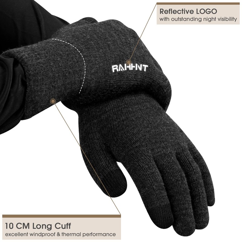 Rahhint Wool Winter Gloves Men Women Fleece lined Knit Gloves with Touchscreen Fingers Insulated Gloves Keep Hand Warm Gift