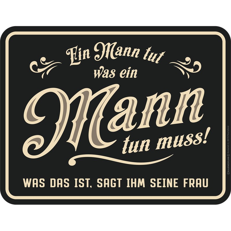 Rahmenlos decorative sheet metal sign for men with German text ‘Ein Mann tut was er tun muss’