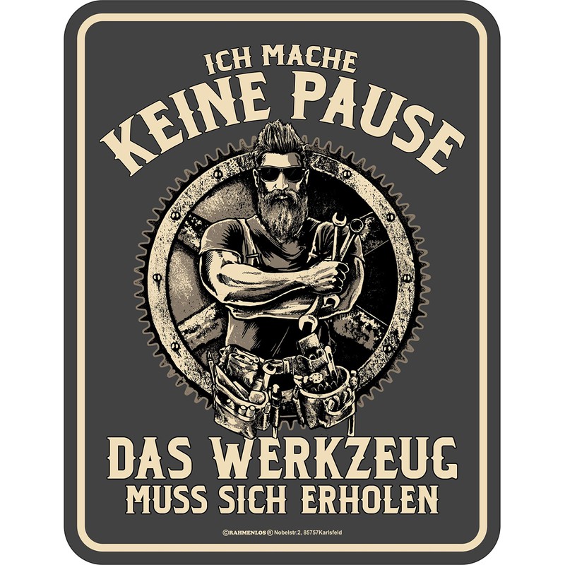 Rahmenlos Decorative tin sign for the craftsman: I'm not taking a break, the tool has to recover! “Ich Mache Keine Pause, das Werkzeug muss Sich erholen!”