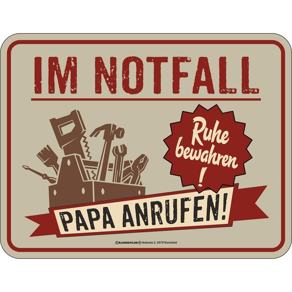 RAHMENLOS Decorative Tin Sign with German Text "Im Notfall Papa anrufen" [German