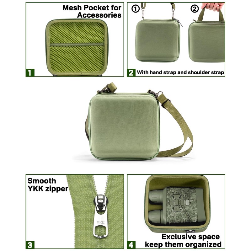 - ▶Convenient Design - Convenient mesh pocket keep cables, SD card, neck strap and small accessories organized. Exclusive space can keep your night vision binoculars and accessories in place to reduce friction. Comes with comfortable hand strap and shoulder strap to carry easily. Smooth but strong YKK zipper for easy to opening and closing your hard case.
