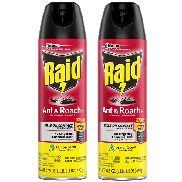 Raid Ant & Roach Killer Lemon Scent, 17.5 OZ (Pack of 2)