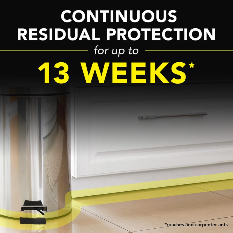 - Insecticide with residual action kills ants and roaches on contact and keeps them away for up to 4 weeks. Also effective against waterbugs, palmetto bugs, silverfish, carpet beetles, earwigs, spiders, lady beetles, black widow spiders and more.