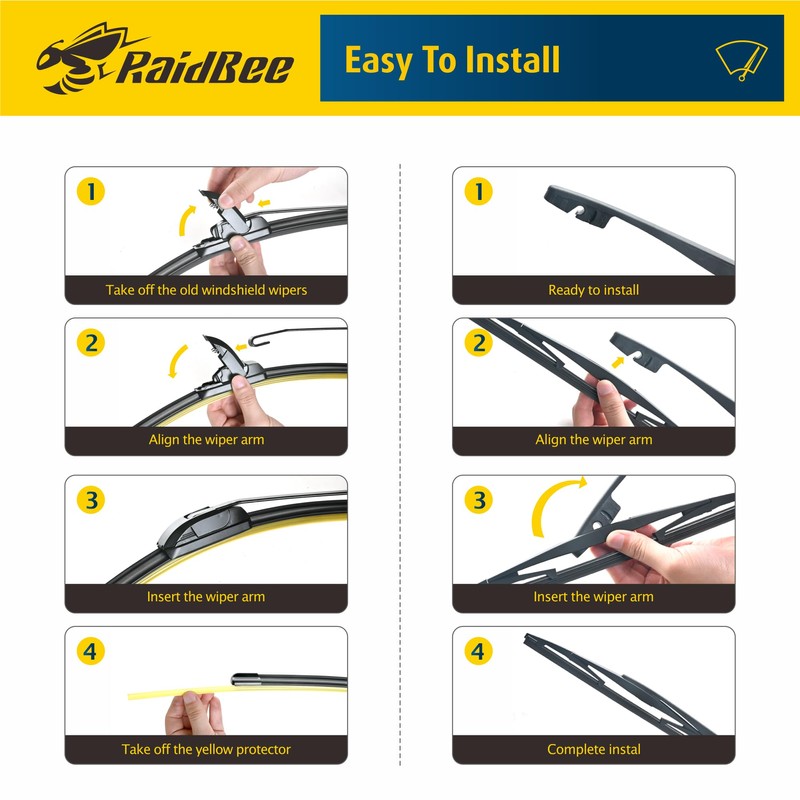 - Easy installation: RaidBee wiper blade is very easy to install. At the same time, there are the wipers blades installation step diagram and installation video. If you have any questions, you can also ask us.