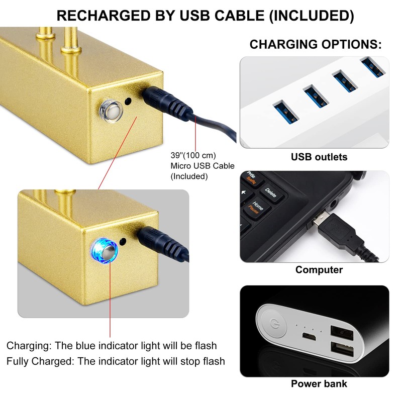 - Rechargeable Picture Light--- Powered by 3.7V 5000 mAh lithium battery, 6-7 hours full charge can be support lighting up 10 hours (USB Cable Included).