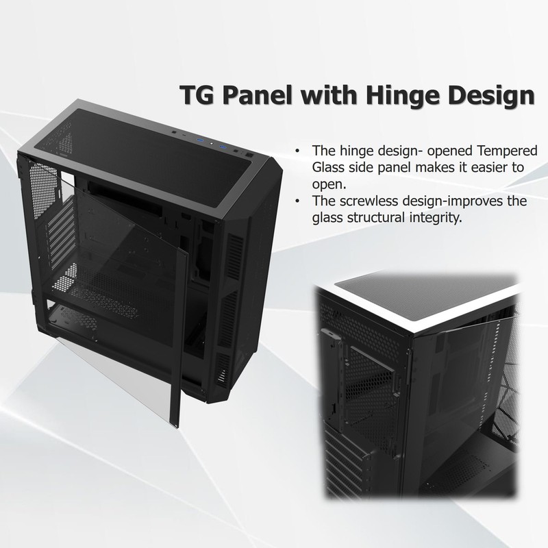 • The specialized hinge design opened Tempered Glass side panel