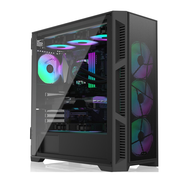 RAIJINTEK PONOS Ultra MS4 E-ATX Mid Tower PC Case, Opening Tempered Glass Side Panel, Pre-Install 4 ARGB Fans, Mesh Front Panel, Black (0R20B00226)