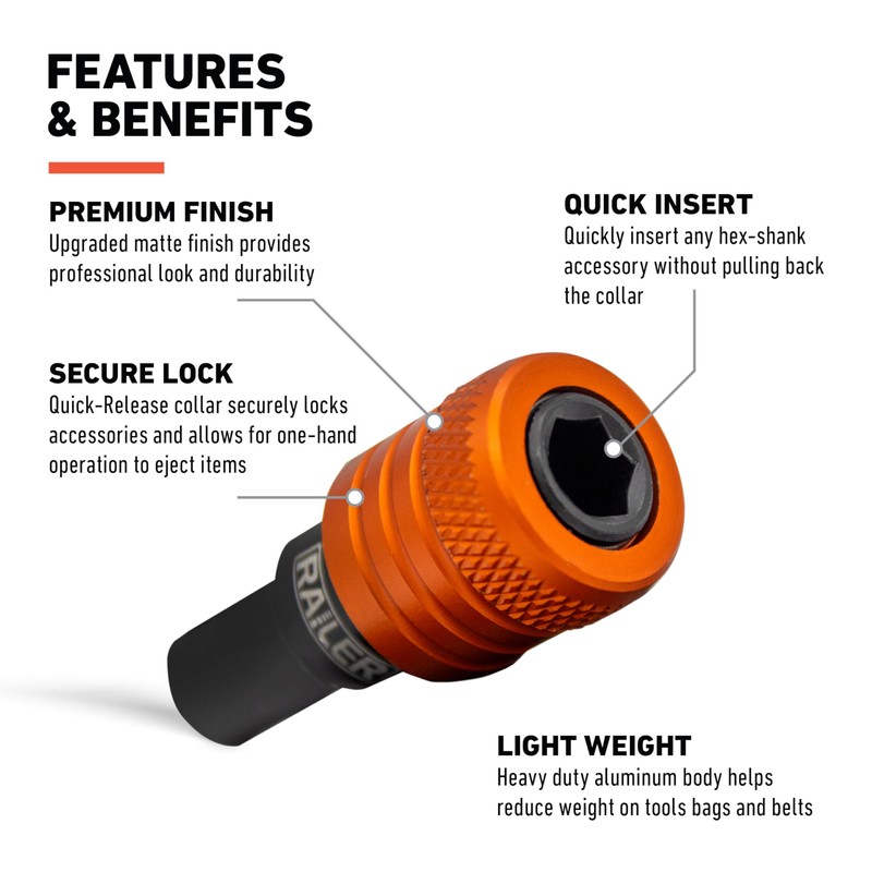Railer Keychain Bit & Socket Holder - 1/4" Hex Bit Holders w/Impact Socket Adapters - Quick-Change Design For Nut Drivers, Screwdriver & Drill Bits. Easy Convert To 1/4", 3/8" & 1/2" Socket Holder