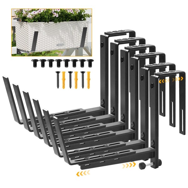 Railing & Wall Adjustable Window Box Brackets | Enhanced Bottom Support | Stable & Not Deformed Flower Box Brackets | Heavy Duty Planter Box Brackets | Perfect for Balconies, Fences & Gardens | 6 Pack