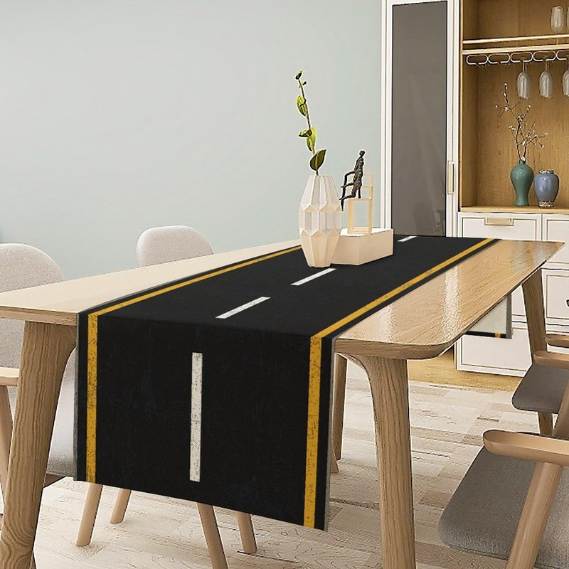 Railroad Track Aisle Table Runner Train Party Decorations Empty Highway Asphalt Road, Empty Highway Black Asphalt Road Theme Tablecloth Runner Table for Kitchen CoffeeTea Table Dinner Room 13x36in
