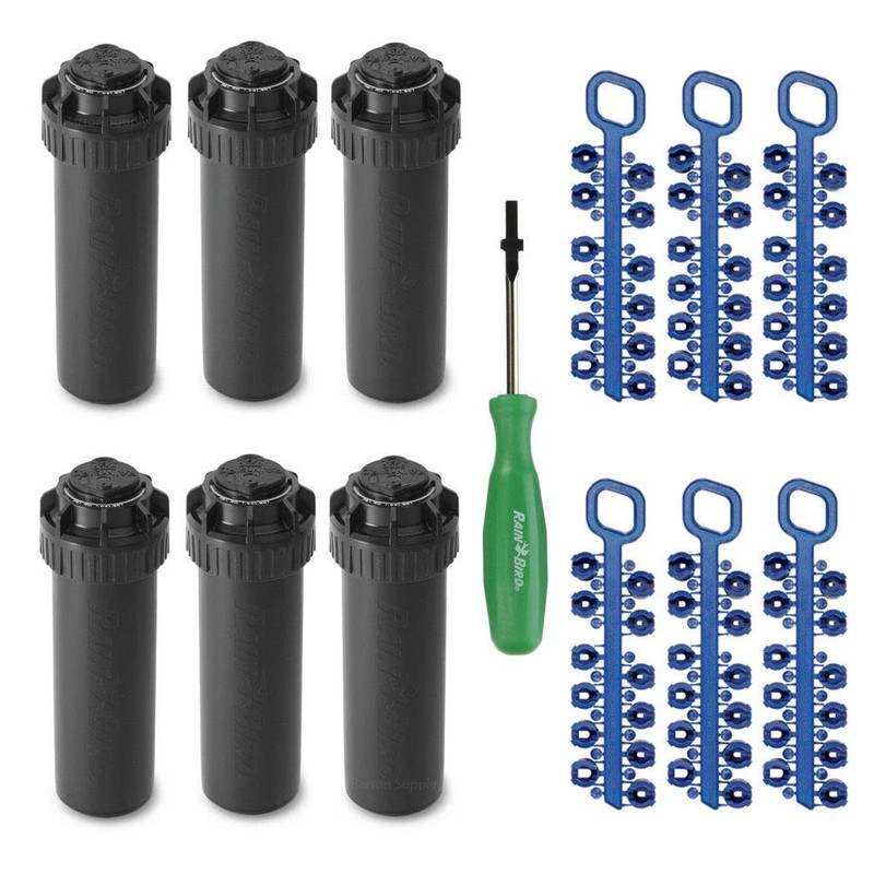 - PERFORMANCE – RELIABILITY - VALUE. RAINBIRD Y54007 POP-UP SPRINKLER with industry-leading Rain Curtain Nozzle Technology delivers a uniform spray pattern throughout to ensure that your lawn is watered evenly and consistently over the entire radius! Our rain curtain nozzles include 8 low-angle nozzles and 8 standard angle nozzles.