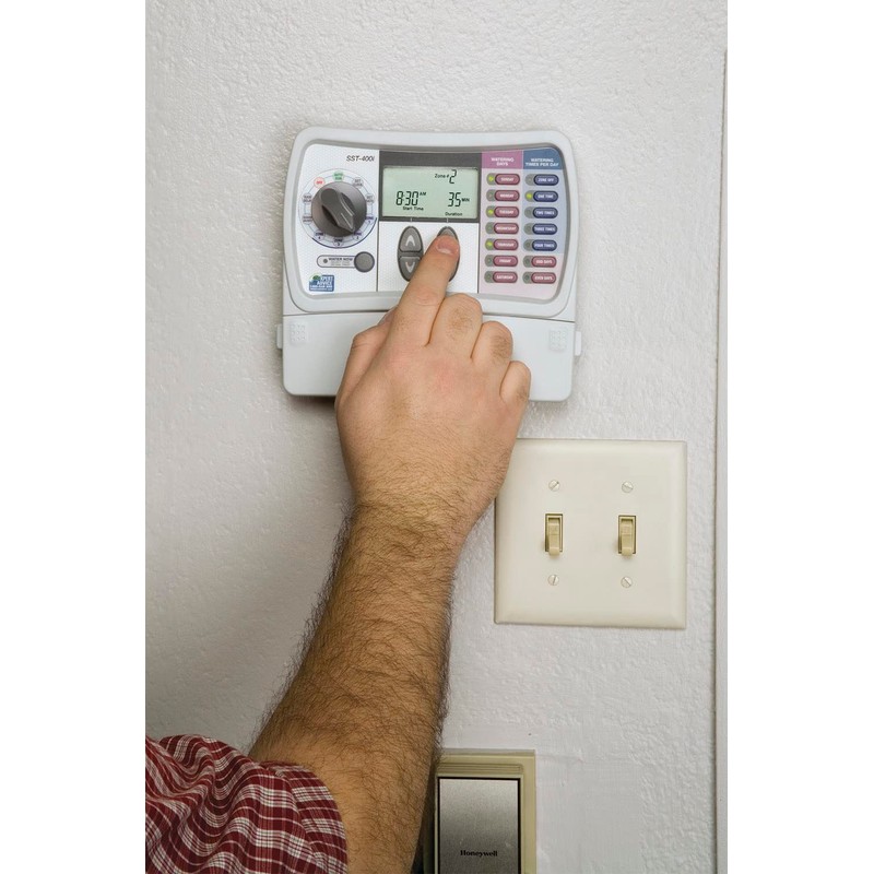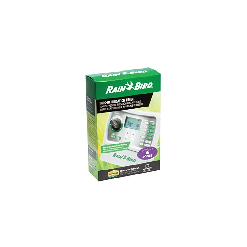 Rain Bird SST600IN Simple-To-Set Indoor Sprinkler/Irrigation System Timer/Controller, 6-Zone/Station. Rain Bird introduces the new "SST600IN" Timer packed with enhanced features and programming options (this new & improved model replaces the Obsolete SST600I). This indoor-mounted timer is so easy to use you won’t need the instructions!! Intuitive, simple zone-by-zone settings allow different watering schedules for each area of your yard; providing greener results with less water. Controls up to 6-valves with watering times from 0-240 minutes per zone. Simply turn the dial to each zone to quickly and easily set: custom days of the week, odd or even days, or a cycle number of days independent of all other zones. Programs up to four custom watering times per day to correctly water slopes and clay soils in short intervals allowing water to soak in and avoid runoff. Quickly review all settings with the LCD screen and easy to read LED indicator lights. Additional Features: "Seasonal Adjust" allows increase in watering time up to +100% in hot/dry months or reduce in cool/rainy periods to as little as -90%. "Rain Delay" suspends watering for up to 72-hours; resetting automatically once delay ends. "Water 1 Zone Now" button waters a single zone for up to 180 minutes. "Water All Zones Now" button waters all zones for duration of first programmed time. Superior built-in surge protection guards against damage from lightning strikes or power surges. All timer settings are stored indefinitely in memory; no need to re-program in case of power outage. Automatic trouble shooting of valves and wiring; if a short is detected, timer suspends watering to the zone and displays a warning message. Sealed case protects from moisture, insects and grime; timer designed for use inside of home, garage, or waterproof shed. Supports a master valve or pump start relay, and a rain sensor. Compatible with most 24 VAC irrigation valves. Includes transformer power plug with 6’ cord and installation guide. Electrical Specs: Input - 120 VAC/ 0.17 AMP/ 60Hz. Output - 25.5 VAC/ 0.65 AMP/ 60Hz. UL, and cUL certified. Rain Bird “The Intelligent Use of Water”