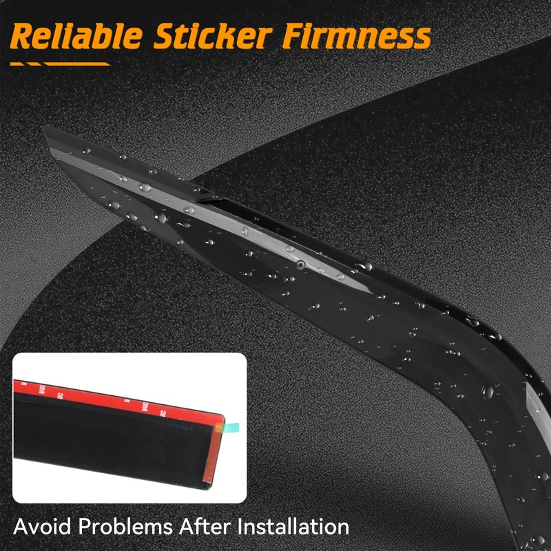 - Easy to Install: No drilling! No additional tools! The rain guards feature industrial-strength tape and provided with clips, screws and nuts. After it is successfully installed, it can be safe and sound even in the face of extreme weather conditions and collision cuts and scrapes