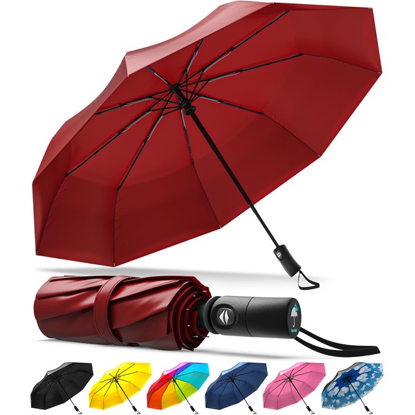 - Windproof Travel Umbrella: Our compact umbrella is built to withstand the worst Mother Nature has in store. It features 9 reinforced fiberglass ribs, a sturdy all metal shaft and frame for rigidity in high gust situations